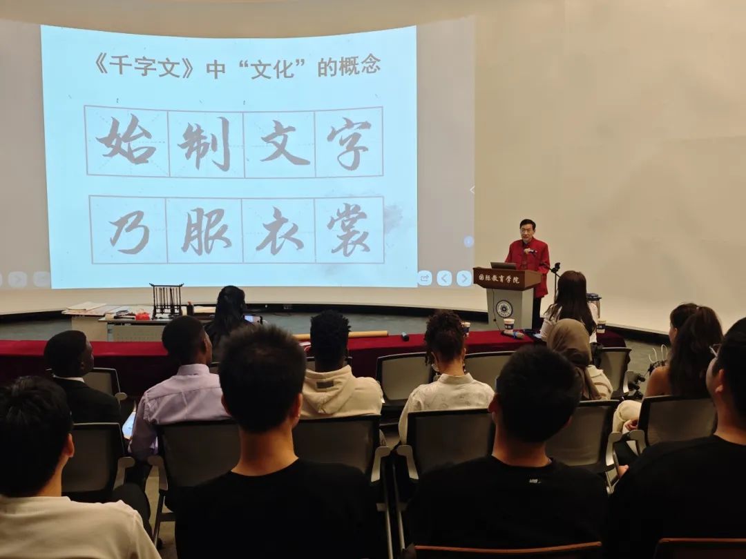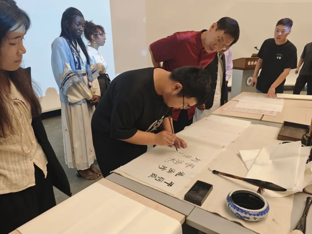 近日,北京书法家协会会员、荣宝拍卖书法作品专家百川老师为中外师生们带来了一场生动的“传承千年智慧,领略文字之美”——“千字文”国学文化讲座和书法展示活动。我校中外合作办学学生和来自摩洛哥、孟加拉、乌干达、赞比亚等国家的百余名学生参加了活动。