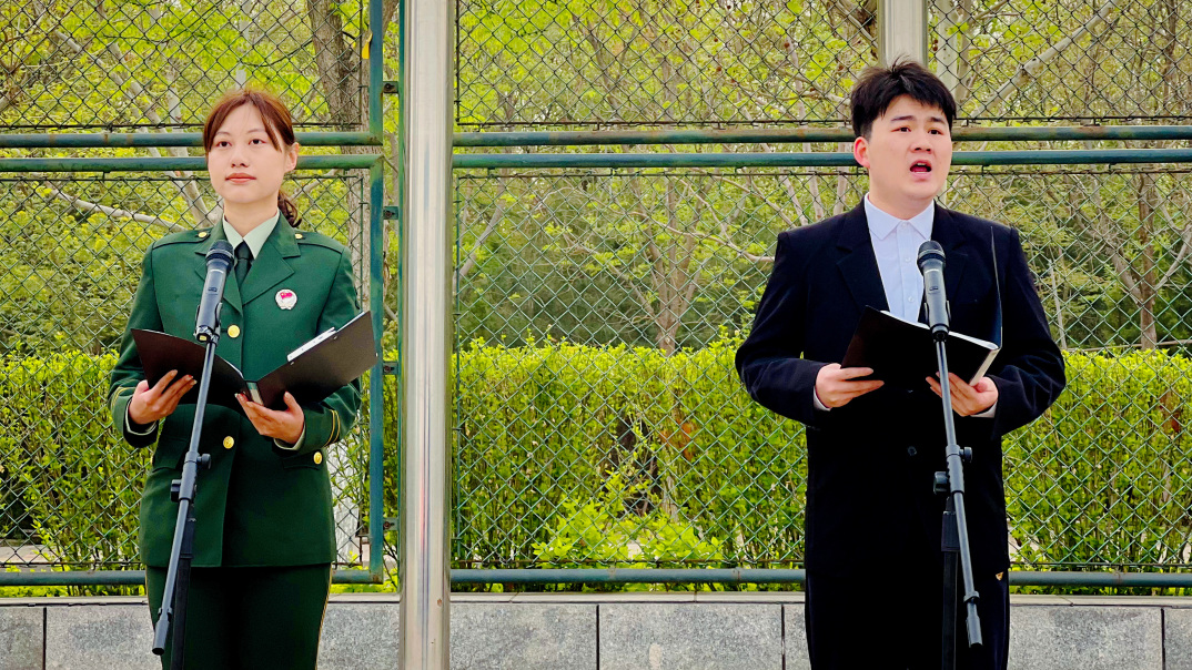 升旗仪式结束后,材料学院退休教师吴边鹏教授以“树立总体国家安全观,以青春伟力共筑国家安全防线”为题在国旗下开展理想信念教育宣讲。思政课教师崔梦影以《国家安全 我的责任》为题,为现场师生带来了一堂生动的思政课。青年学生代表通过朗诵形式宣传国家安全由我做起,为我们传递家国情怀,以青春之声,彰显了当代青年卫国责任与担当。