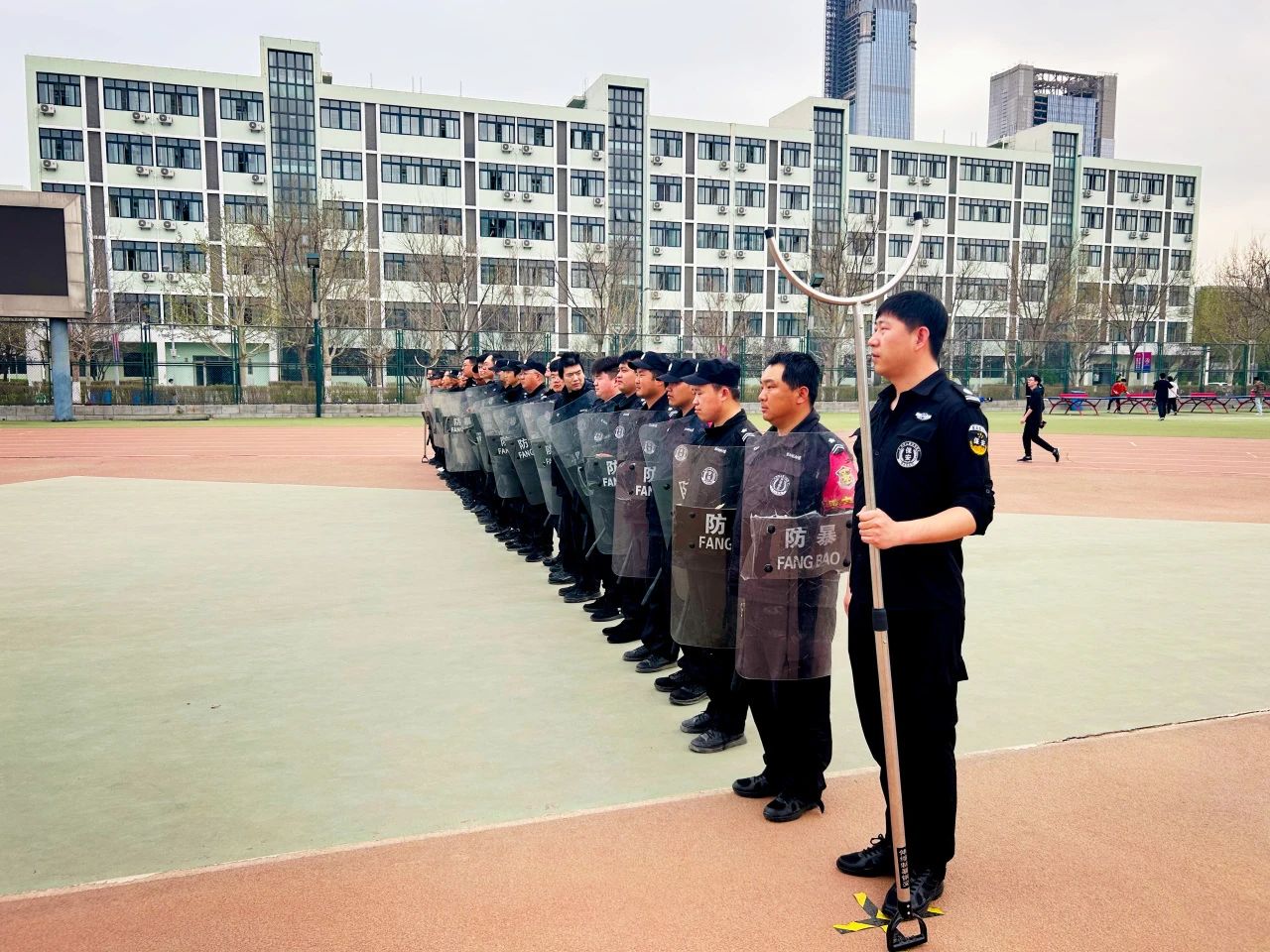 近期,学校开展反恐防暴演练,演练模拟了歹徒伺机潜入校园体育场对正在上体育课的学生进行疯狂追砍场景,安保人员及时发现立即报警,并拉响警报进行封堵包围,用盾牌、钢叉与歹徒对峙,同时疏散人群,避免对师生造成伤害,最终成功制服歹徒,把嫌疑人带离校园。整个演练过程中处置人员反应迅速、配合密切,安保队伍快速报警、快速出动、快速处置,突出的业务能力和专业的处置能力赢得在场师生的认可。