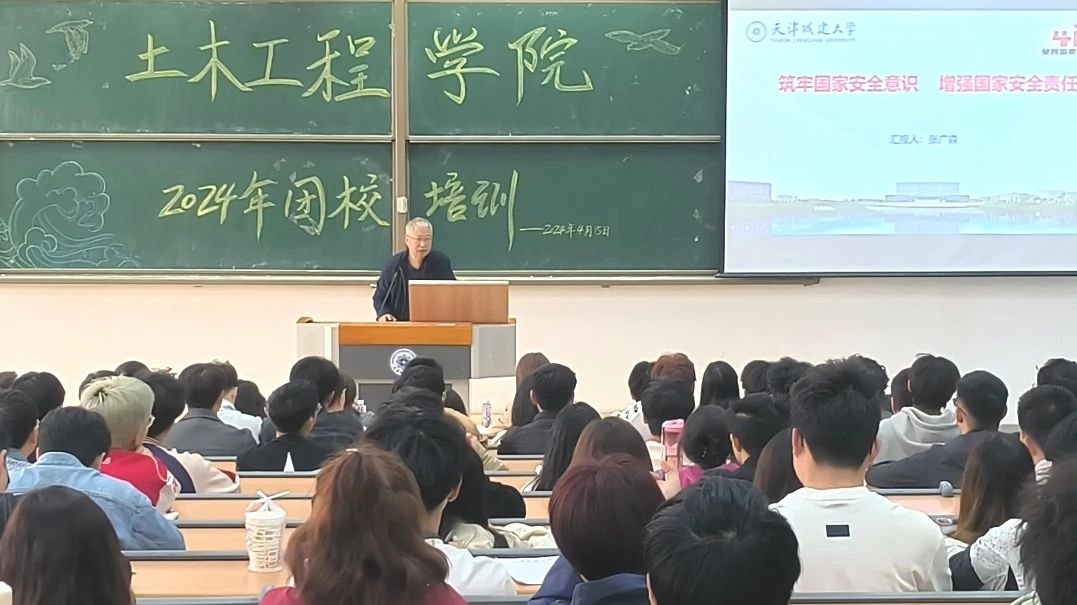 土木工程学院开展2024年度团校开班仪式暨国家安全专题讲座活动。离退休教师、原马克思主义学院院长张广森教授以“筑牢国家安全意识,增强国家安全责任”为主题,从历史背景出发,阐释了“国家安全观”的丰富内涵和核心要义。按照“人民安全”“政治安全”“经济安全”三个维度带领同学们深刻理解“总体国家安全观”,分析了当前国家安全面临的重大风险和挑战,教育引导青年大学生增强忧患意识、防范风险挑战,必须要做到提高政治站位、增强大局观念;树立历史眼光、强化理论思维;增强问题意识、坚持问题导向;加强斗争历练,增强斗争本领。