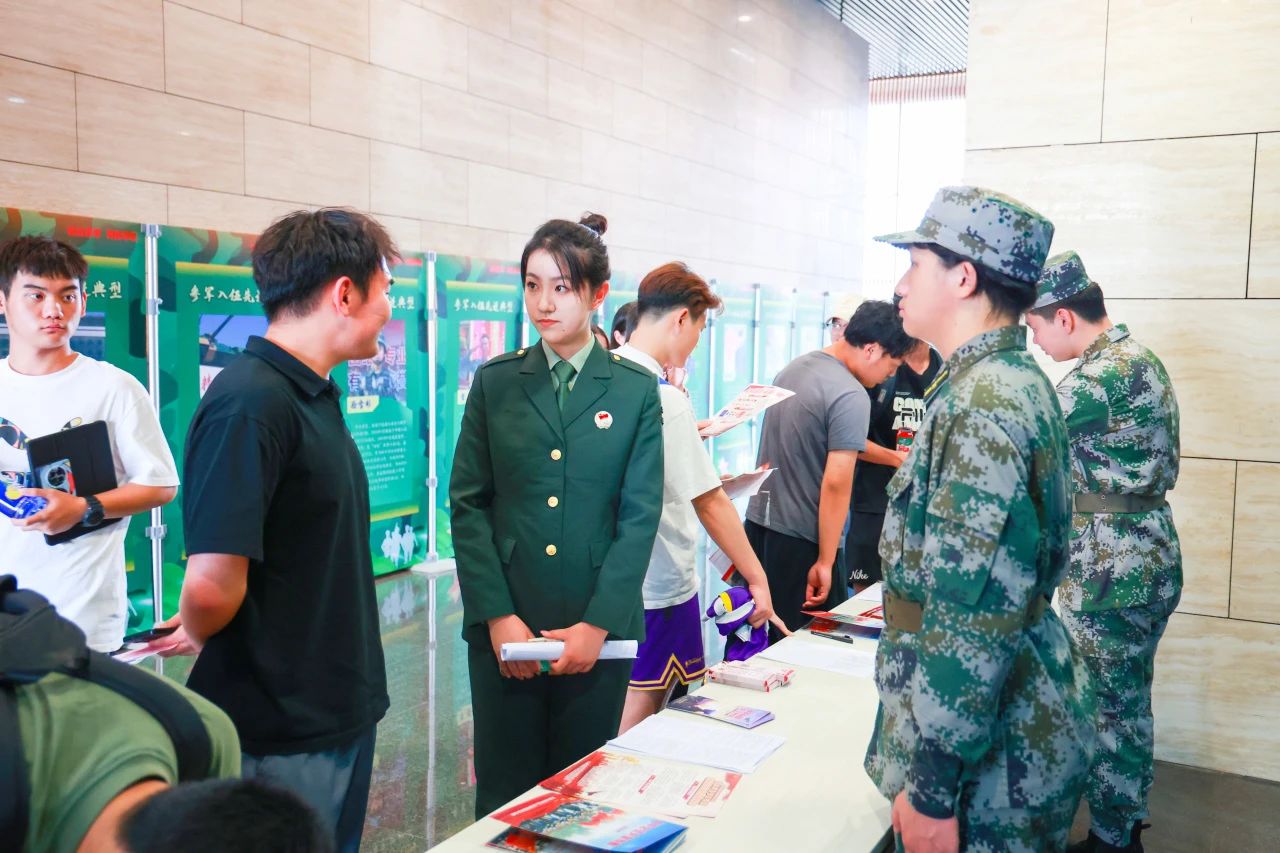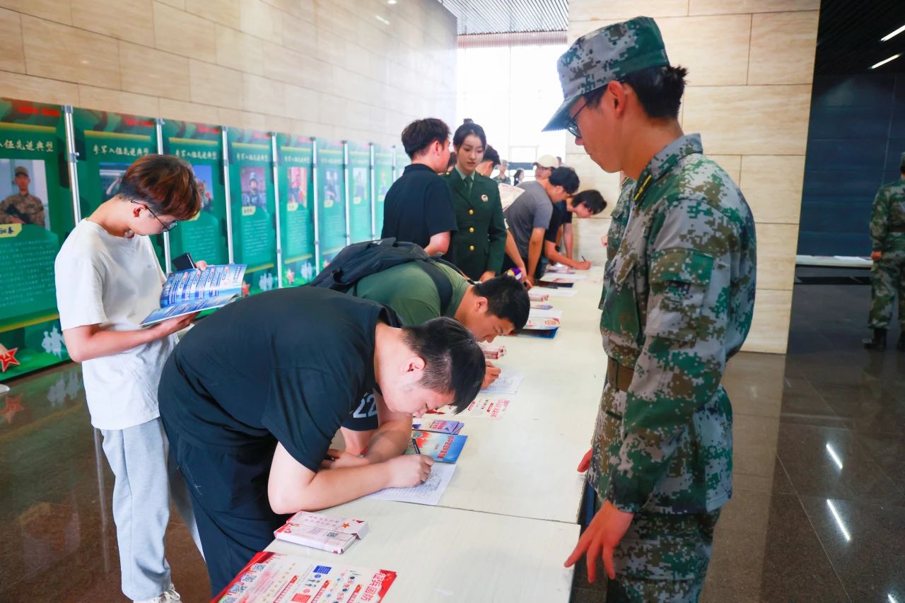 仪式结束后,师生前往二楼中厅参观大学生参军入伍先进典型风采展,并进行互动交流和政策咨询。