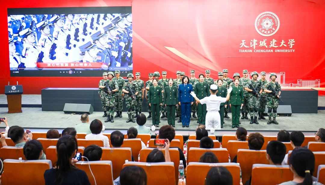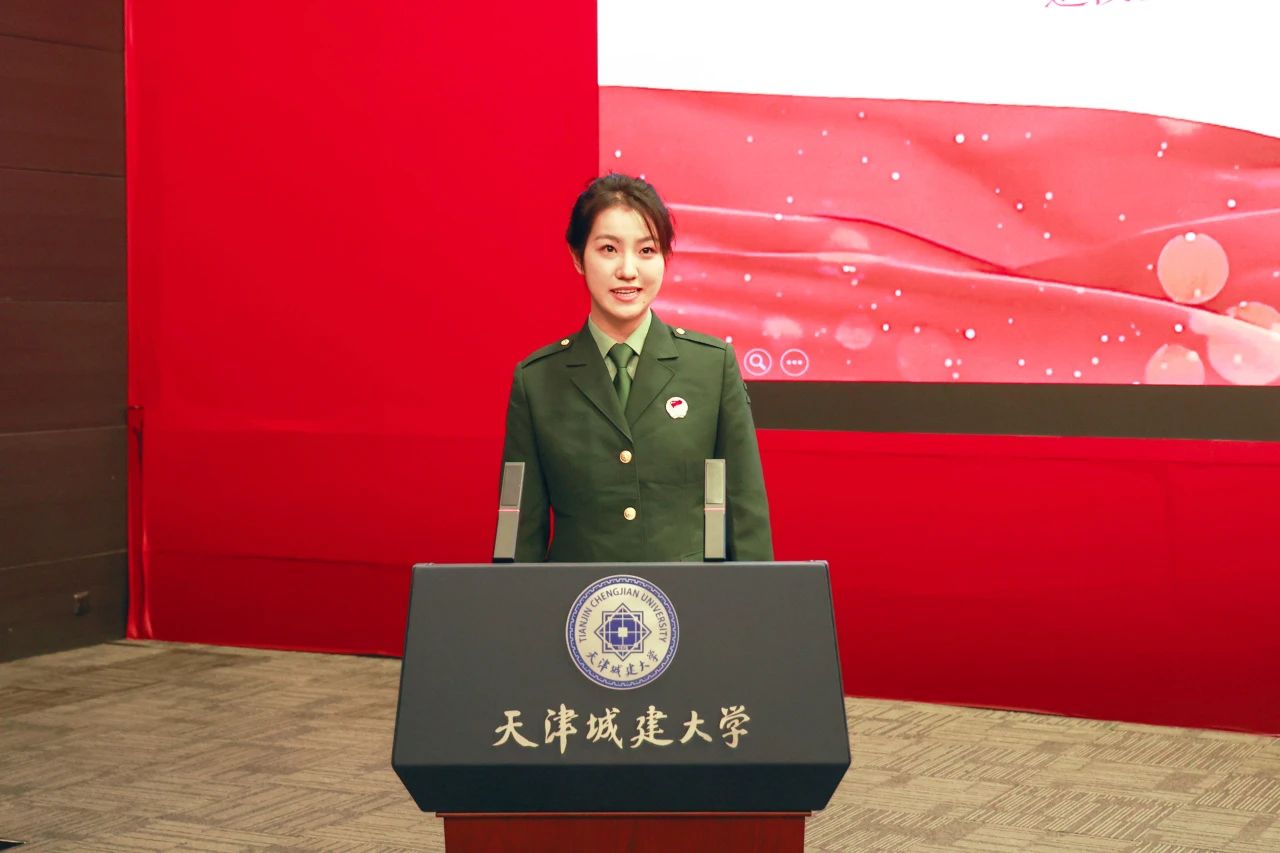 原中国人民解放军中部战区陆军、国际工程学院22环境合2班石静蕾作为天津市和平区征兵宣传形象大使代表发言,为应征青年树榜样、立标杆,彰显了新时代青年学子自觉投身到强国强军伟大实践的爱国情怀,在校园中营造了“当兵最光荣”的浓厚氛围。