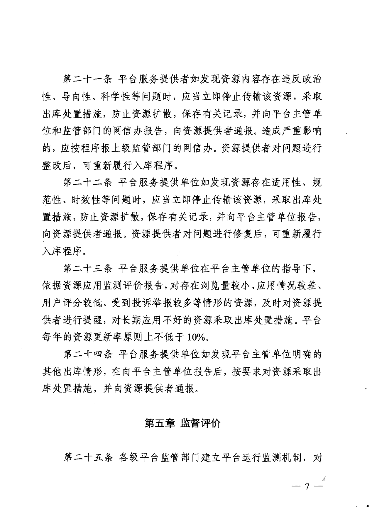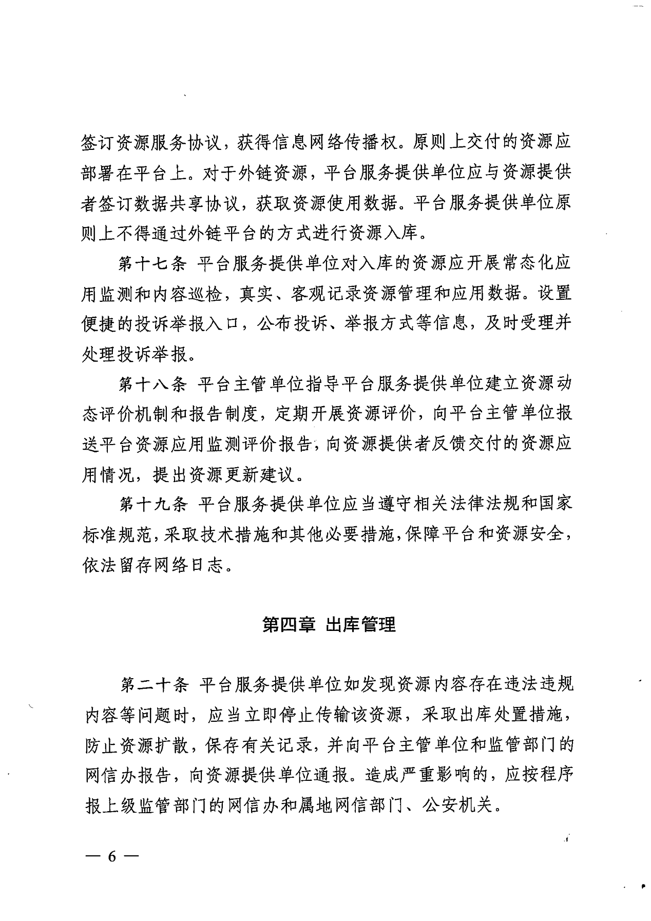 《规范》指出,平台资源的入库出库应坚持“择优入库、常态监测、定期评估、动态调整、公益服务、安全可靠”的原则。
