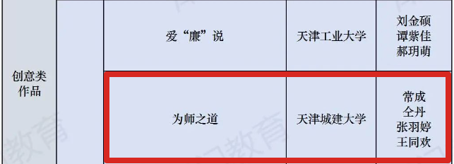 党委宣传部教师常成等申报的《为师之道》获“创意类作品”三等奖。
