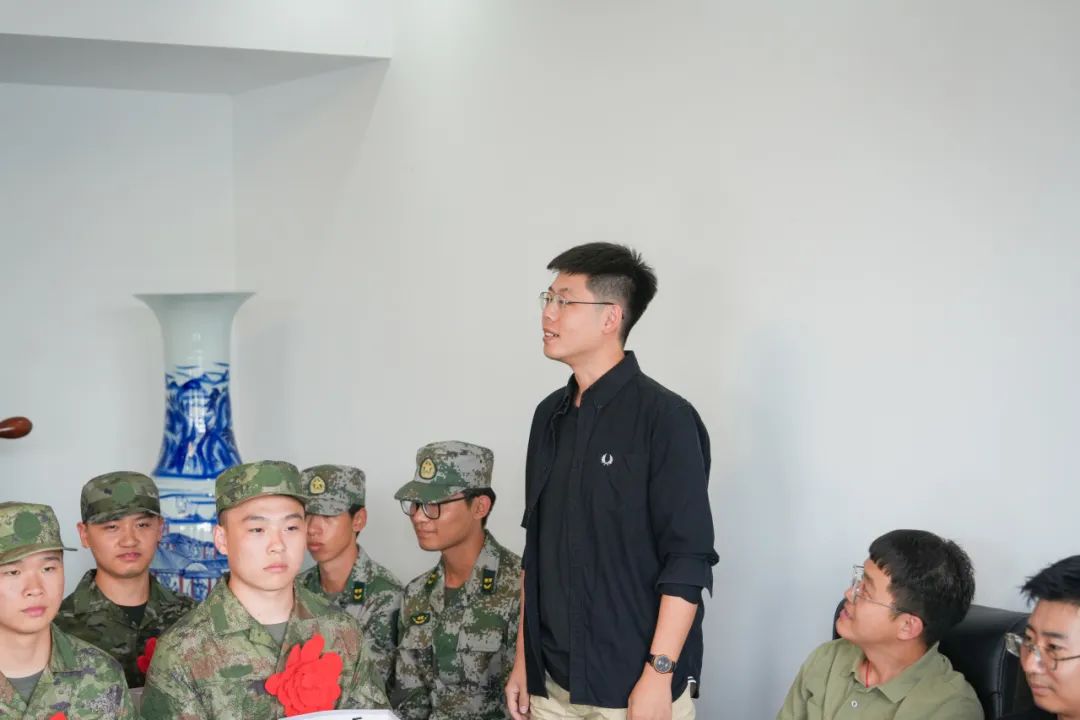 大学生预备连退役士兵代表魏立鹏、裴子栋向预定兵同学们分享了在部队的亲身经历和成长收获。与会老师们的殷切嘱托抒发了对于学生的牵挂与爱意,触动了新兵们内心最柔软的心弦,更加坚定了新兵们投身国防建设的理想信念。