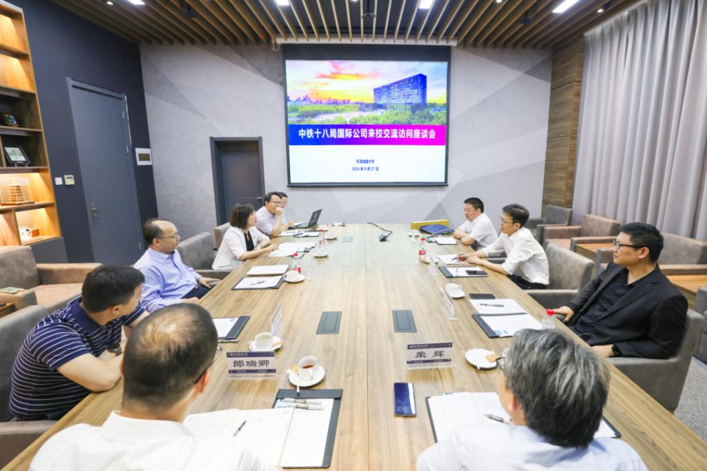 我校科技处处长刘中宪、材料学院荣辉教授、土木学院郎瑞卿副教授中铁十八局国际公司工程部高级工程师杨海福就“超高层建筑”、“混凝土修复”等前沿科技领域展开了深入的探讨,就科研联攻、技术融合实践转化及联合申请高水平建筑奖项等校企合作内容达成一致。