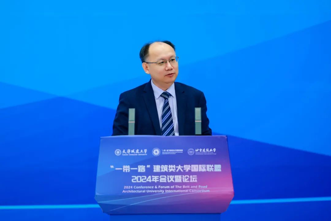 北京建筑大学党委书记郑宇代表联盟致辞,他表示联盟始终以“共建”为初心、以“合作”为核心、以“共享”为目标,致力于推动联盟内教育科研合作,积极构建“互联网+”国际教育合作模式和人才培养共享机制,联盟品牌活动价值与影响力不断加强。未来,联盟将进一步构建科学、高效的联盟管理机制,持续整合联盟成员单位学科优势,进一步扩大联盟成员间学术交流和教育科研合作,构建更加开放、融合、创新的全球建筑工程领域高等教育共同体。