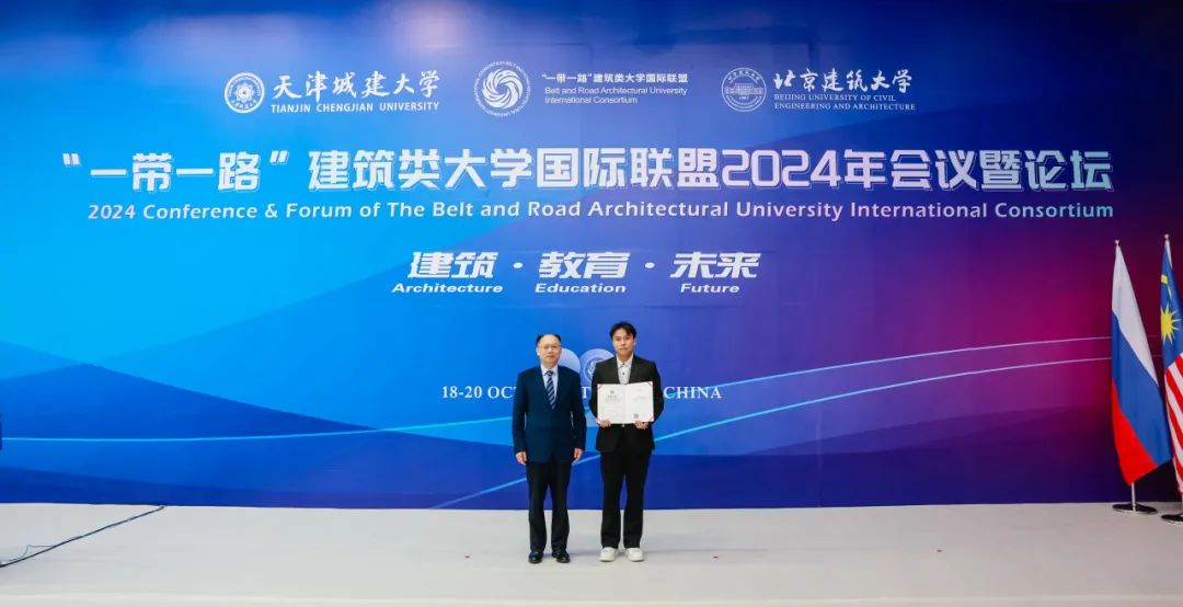 会议第二阶段由我校党委常委、副校长杨静主持。与会嘉宾为2024年“一带一路”国际大学生数字建筑设计竞赛获奖师生及单位颁奖。由联盟发起举办的 “一带一路”国际大学生数字建筑设计竞赛,至今已成功举办五届。2024年“一带一路”国际大学生数字建筑设计竞赛以“一带一路”历史建筑保护更新与活化利用为主题,吸引了来自11个国家和地区的79所高校参加,参与师生达1700余人次,我校第四年获得优秀组织奖,建筑学院推荐的参赛作品《城市融合,城市会客厅设计》《重塑新生——基于全龄友好视角下的城市更新设计》获得优秀作品奖;李小娟、陈立镜、王克宁3名教师荣获优秀指导教师称号。