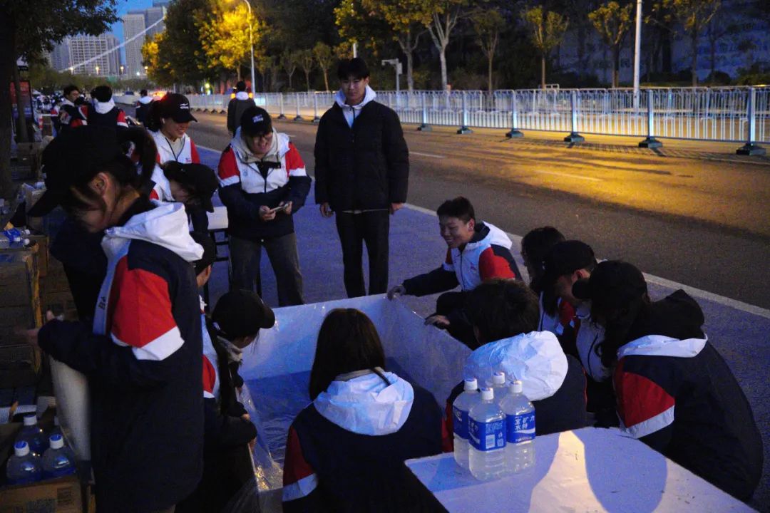 清晨,全体志愿者便已集合到位,由本次志愿服务活动负责人统一分发早餐,并详细阐述了志愿服务期间的各项注意事项。至凌晨4:00,各项前期准备工作已基本就绪,志愿者队伍整装列队,蓄势待发,准备全身心投入到即将举行的天津马拉松赛事志愿服务工作中。