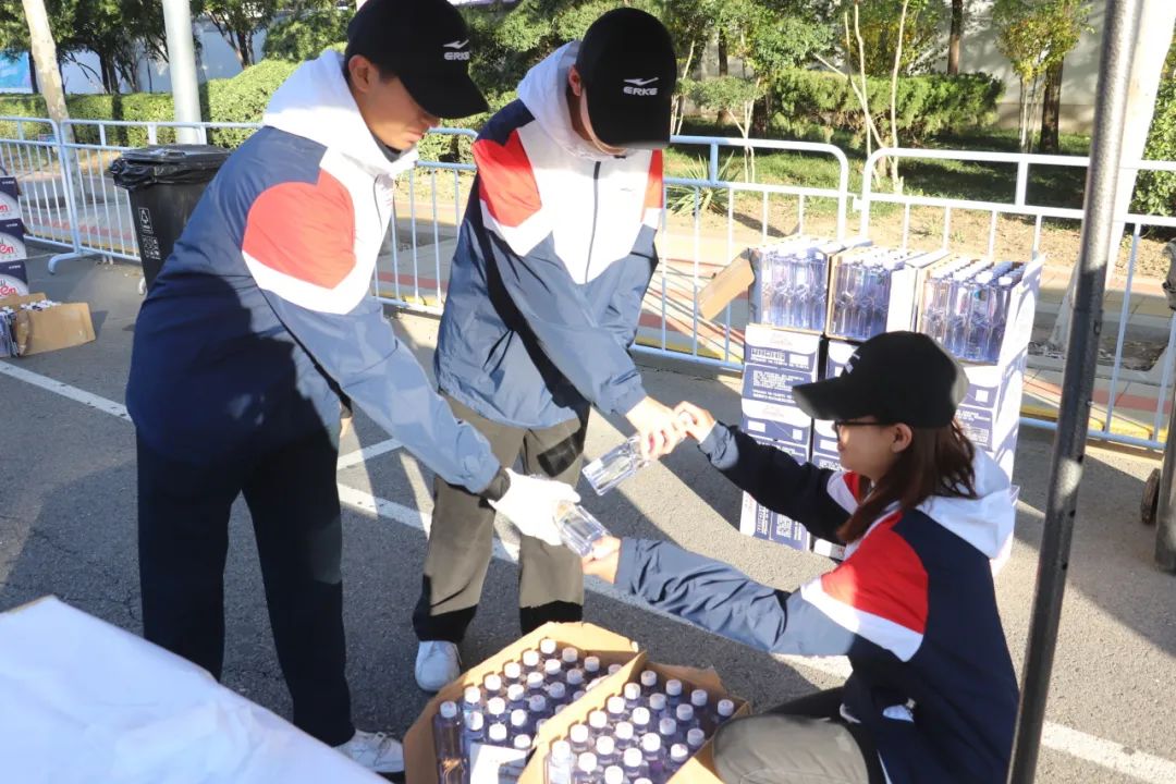 在赛道沿线的补给站点,天城大志愿者们整齐列队,为每一位途经的参赛选手准备了充足的饮用水及功能性饮料。这些年轻的面孔,用他们的实际行动展现了新时代青年的责任感与活力,不仅为选手们提供了必要的能量补给,更传递出积极向上、勇于拼搏的精神风貌,成为赛事中一道亮丽的风景线。