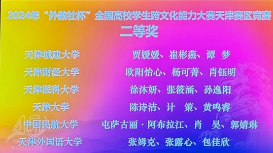 近日,由天津市教委主办的2024年全国高校学生跨文化能力大赛天津赛区竞赛成功举办。我校外国语学院教师郄洪欣、周银凤、李霞指导的三名学生(外国语学院22级英语专业贾媛媛、经济与管理学院22级工商管理专业崔彬燕、经济与管理学院22级工商管理专业谭梦)组成团队,在天津赛区的43个参赛团队、129名选手中脱颖而出,荣获学生团队二等奖。