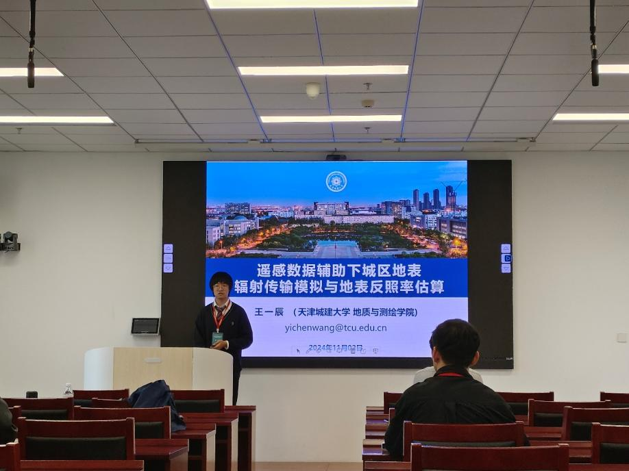 王一辰主要介绍了顾及城区三维结构的辐射传输模拟方与地表反照率估算方法的研究进展。