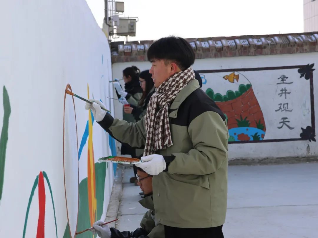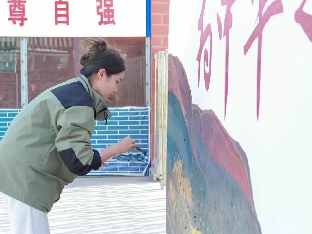 学校赴疆支教团注重将文化润疆、五育润心融入工作日常,他们不仅在课堂上播撒知识的种子,还在校园文化生活的方方面面创设育人情景。墙绘创作过程中,支教团成员团结协作,身体力行,发挥专业特长,彰显劳动风采,并鼓励小学生们积极劳动,亲身实践,展现了积极向上、团结奋进的精神面貌。他们以绘制墙绘的形式充分诠释了德育、智育、体育、美育、劳育的新融合、新发展、新内涵,为支教学校营造了浓厚的爱国主义氛围和学习知识的育人环境,促进当地学生高素质全面发展,为边疆教育事业高质量发展注入新活力。