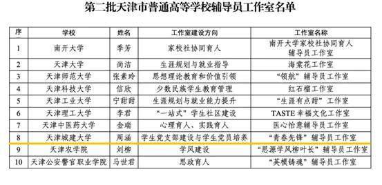 学校党委聚焦加快构建学校思想政治工作体系,发挥思想政治工作委员会统筹协调作用,筑牢思想政治工作“生命线”。党委书记亲自谋划、靠前指挥,总结形成思政工作体系建设经验,先后刊发于全国高校思政网、天津教育报。深化大思政内涵建设,思政项目案例培育初见成效,多个项目、案例先后获评全国、全市高校思政工作精品项目、“三全育人”优秀案例。2024年度高校思想政治工作质量提升综合改革与精品建设项目,学校3个项目入选,获批数量位居天津市第一,全国前十;本次4项入选,继续在市属高校名列前茅,实现新突破。提高学校思政队伍专业素养,“丰碑领航”“青年先锋”辅导员工作室先后入选天津市普通高等学校辅导员工作室,“‘城’不欺我的马老师”“‘城’事儿”双双获评成为天津市首批网络思政名师工作室。2024年我校辅导员首次入围全国高校辅导员素质能力提升骨干训练营并获“优秀风采”荣誉称号,取得历史性突破。学校连续四年获评天津市大学生思想政治教育工作优秀单位”。