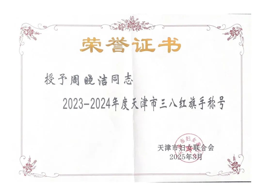 近日,天津市妇女联合会公布2023-2024年度天津市三八红旗手标兵、三八红旗手(集体)评选结果,我校土木工程学院周晓洁荣获天津市三八红旗手荣誉称号。本次评选,教育系统高校共有9人获此殊荣。
