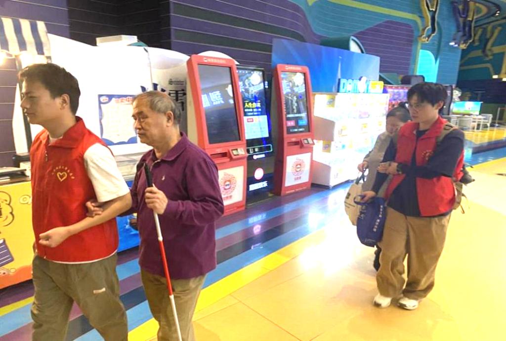 此次活动吸引了年龄跨度从5岁到80岁,地域跨度从宝坻到静海的100余名盲人朋友“观影”。在志愿者们热情、贴心地引导下,视障观众有序入场就座。来自威客电竞马克思主义学院毛泽东思想和中国特色社会主义理论体系概论教研室党支部的党员教师高建华、彭聪、杨晓琳和天津广播电台生活广播《共享阳光》栏目编辑崔艺凡4名志愿者,以“声音画师”的身份,通过细腻的语言重构光影世界。她们将电影中跌宕起伏的剧情、鲜活的人物形象以及丰富的场景细节,转化为通俗易懂的描述,带领视障朋友们走进电影的世界。观影过程中,视障朋友们与家人一同沉浸在电影和讲述中,随着影片的内容时而皱眉,时而浮现笑容。