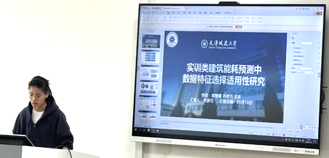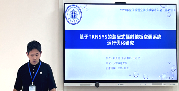 研究生乔梦巧、马子航、靳天昊、张苡宣分别在“建筑能耗评估与需求响应”、“建筑热光声模拟与供热空调控制”、“人行为与热舒适模拟”、“室内外空气流动与环境模拟”分论坛作了题为《实训类建筑能耗预测中数据特征选择适用性研究》、《夏热冬冷地区户用辐射供暖空调系统性能与调控策略研究》、《基于TRNSYS的装配式辐射地板空调系统运行优化研究》、《基于数值模拟技术的双环差速空气幕系统在手术室内的研究》的专题报告。