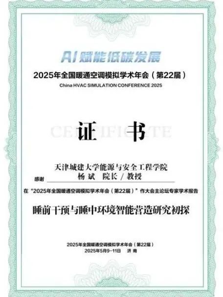 近日,我校能源与安全工程学院师生受邀参加2025年全国暖通空调模拟学术年会。院长杨斌教授在大会主论坛作专家学术报告,同时作为评审组专家参与大会学生论坛优秀奖评审。学院多名教师及研究生参会并在分论坛作专题报告,研究生郑佳其荣获优秀学生论文。