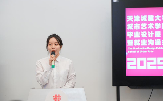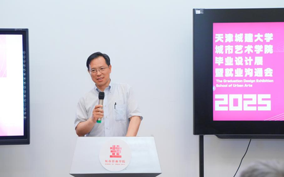 近日,我校城市艺术学院2025年毕业设计展暨就业沟通会隆重开幕。校党委常委、副校长陈志华出席。国家住建部报社天津站长陈军,天津市动物园党委书记张秀军,天津文化和旅游局副处长刘宇,天津乾圣装饰工程公司总经理杜昌松,天津市现代艺术文化交流服务中心理事长石玮,天津云栖智慧社区服务有限公司总经理段桐,中企众鑫(天津)工业设计有限公司总经理刘伟等应邀参加。我校教务处、建筑学院、地测学院相关负责人,城市艺术学院领导班子成员及学院师生代表参加开幕式。