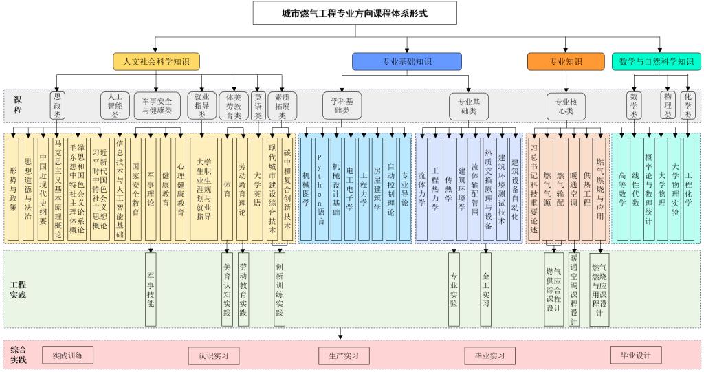城市燃气工程方向:暖通空调课程设计、燃气供应综合课程设计、燃气燃烧与应用课程设计。