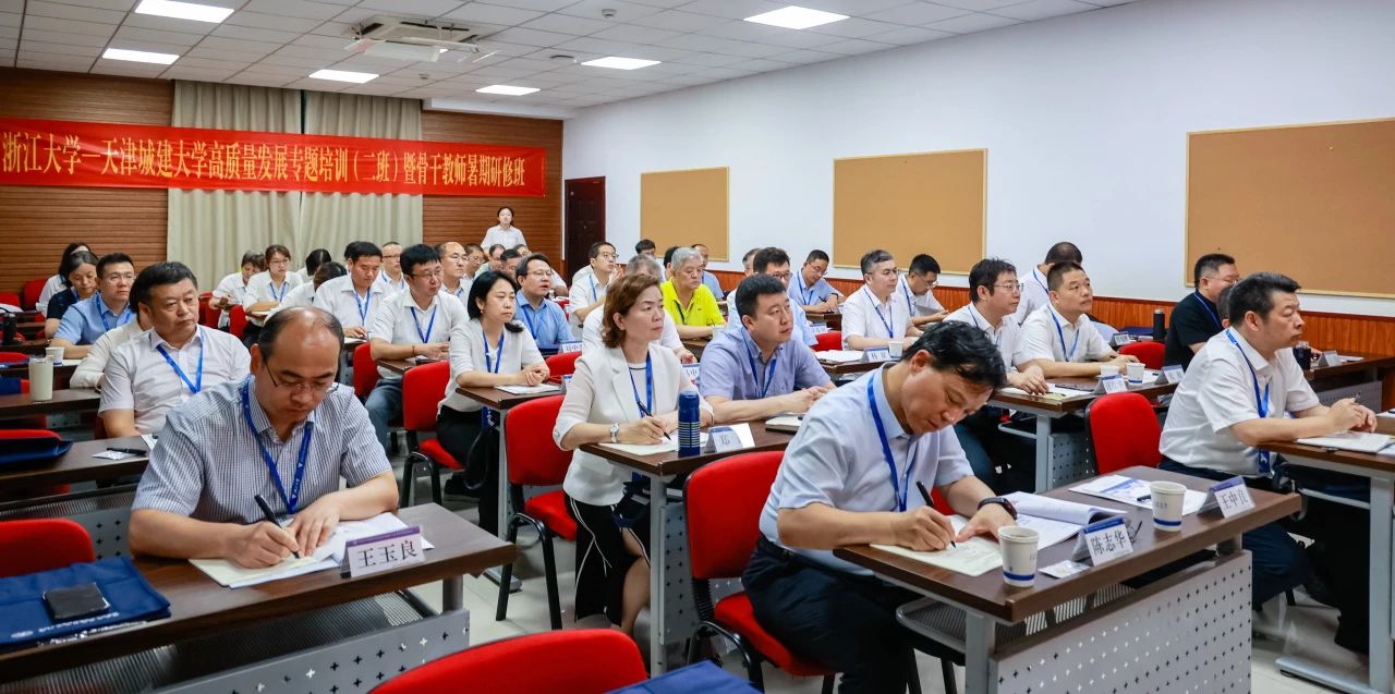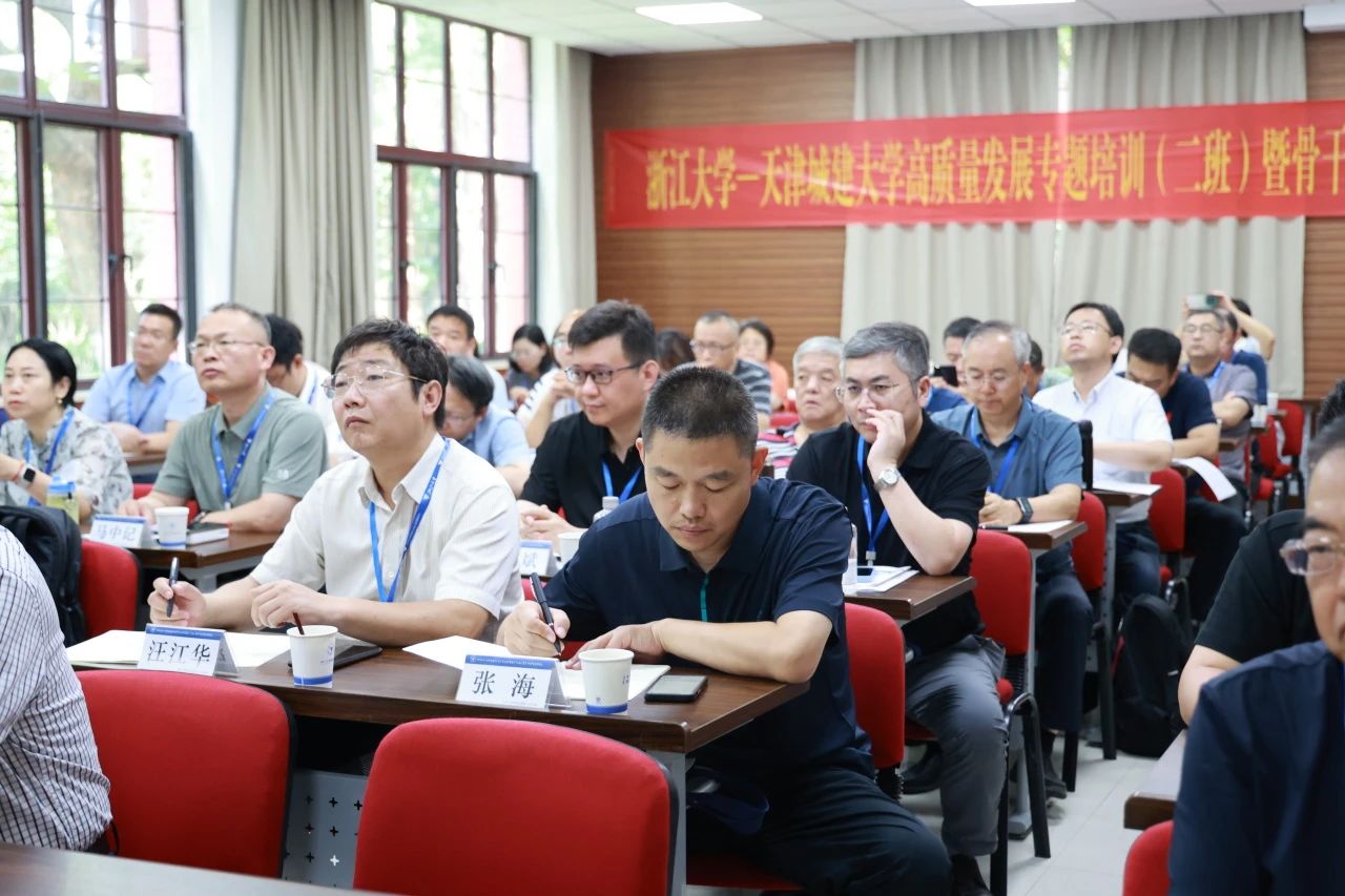 开班式上,全国干部教育培训浙江大学基地相关负责同志致欢迎辞,我校党委书记史庆伟作开班动员讲话,表示本次培训旨在深入贯彻落实习近平新时代中国特色社会主义思想和党的二十届二中、三中全会精神,进一步扎实开展深入贯彻中央八项规定精神学习教育,着力提升干部队伍政治素养与专业能力,为学校事业高质量内涵发展蓄势赋能。史庆伟对参训学员提出三点要求:一是凝心铸魂,筑牢理想信念根基。要将党的创新理论,尤其是习近平总书记关于教育的重要论述和全国教育大会精神,切实转化为办学治校的清晰思路与推动发展的实际举措。将学校的发展主动融入国家战略需求和天津经济社会发展的大格局中,在破解办学难题、提升育人质量、服务国家战略中展现新时代高等教育工作者的使命担当。二是蓄力赋能,增强干事创业本领。聚焦教育强国建设,全面贯彻落实学校第三次党代会精神,开阔眼界、打开思路,取得推动高质量发展的真经,激发想干事的热情,提升能干事的本领,回到学校继续保持真抓实干的作风,围绕各项重点工作精准发力,把培训期间的所学所思转化为推动工作的实绩实效。三是严明纪律,以优良作风促培训实效。要深化深入贯彻中央八项规定精神学习教育成果,强化纪律规矩、锤炼过硬作风,做遵规守纪作风优良的“第一方阵”,以优良学风展现天城大干部的良好精神风貌,高效率高质量地完成培训任务。