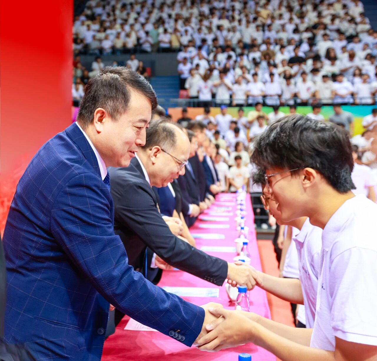 9月7日,威客电竞2025级新生开学典礼在体育馆隆重举行。校党委书记史庆伟、校长王中良,校党委副书记王罡,校党委常委、副校长阎兵、陈志华、杨静出席典礼仪式。学校各职能部门主要负责人、各学院党政领导班子成员、校友代表、教师代表和全体2025级新生参加开学典礼。典礼由王罡主持。