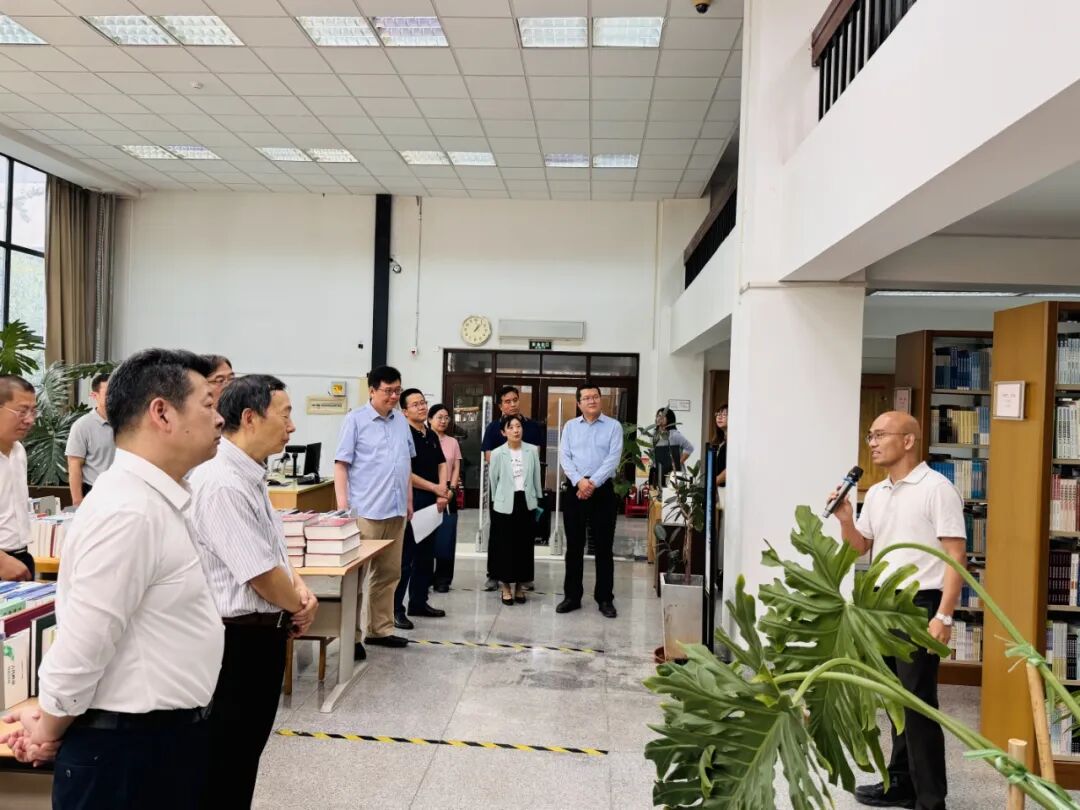 捐赠仪式现场,杨洪兴教授为图书亲笔签名,为图书馆签写捐赠寄语——“祝愿图书馆每天灯火通明,照亮学子前程”。杨教授还结合自身学术经历分享了对知识传播与学术交流的见解。图书馆馆长张文强代表学校接受捐赠。图书馆直属党支部书记刘志军与杨洪兴教授共同为捐赠图书上架,让这批珍贵专著在图书馆“安家落户”。捐赠仪式后,图书馆副馆长柳英重点介绍了图书馆整体资源布局与服务特色,并引导大家一同参观了第三书库、捐赠图书陈展纪念室、半闲书屋。