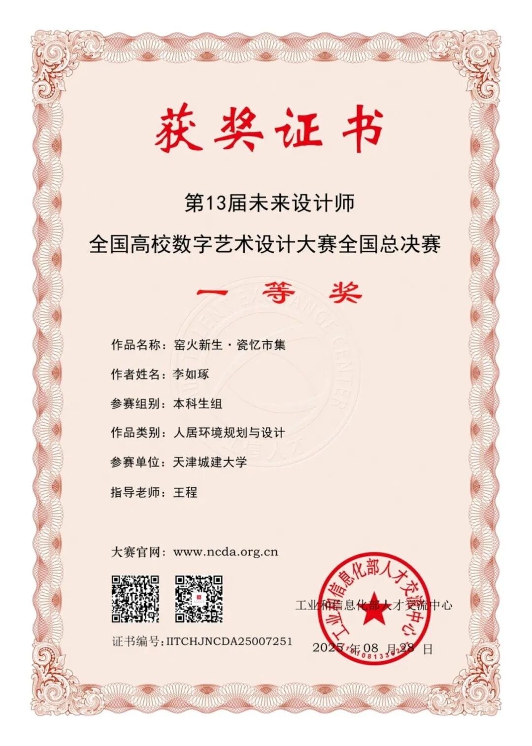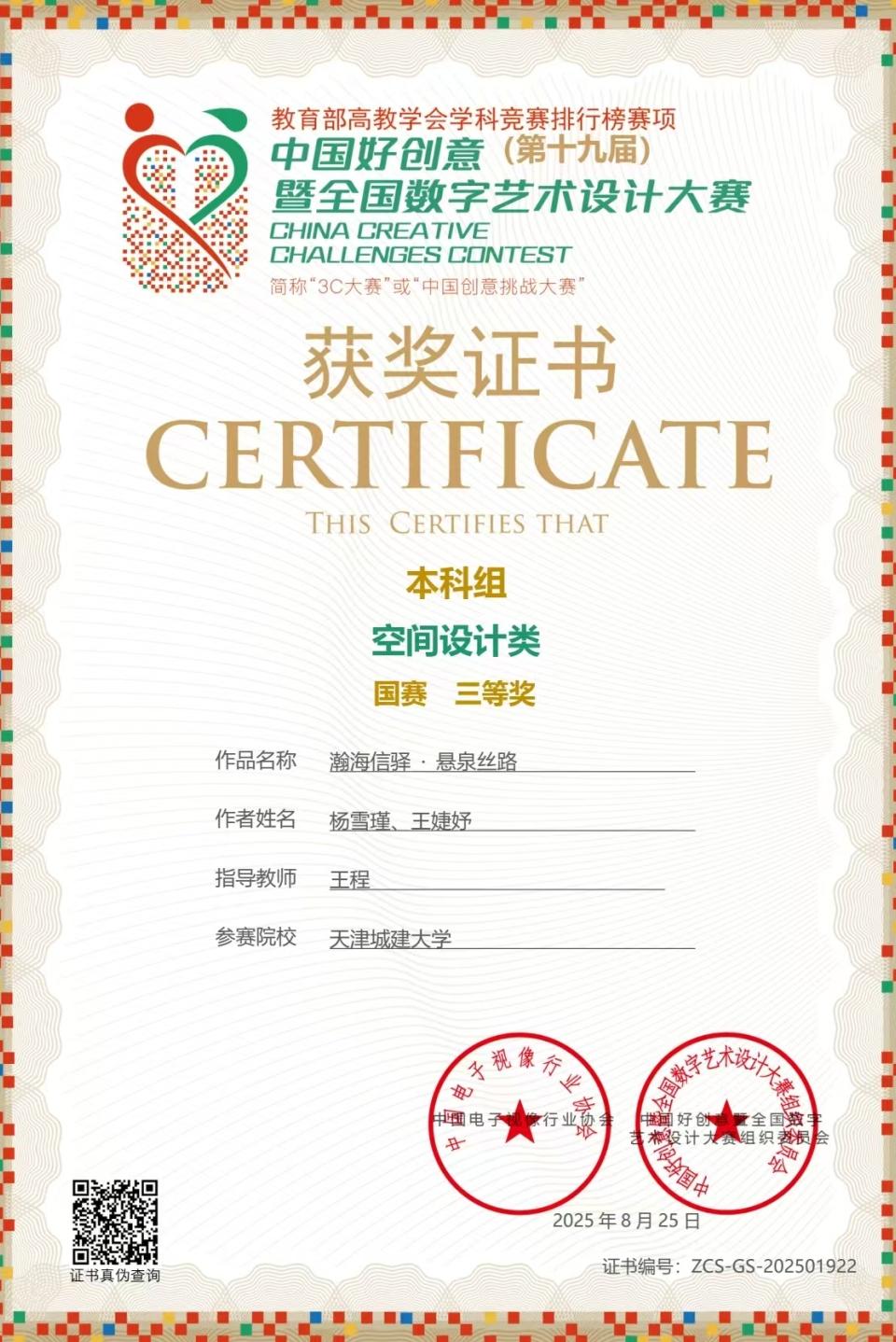 获奖证书展示