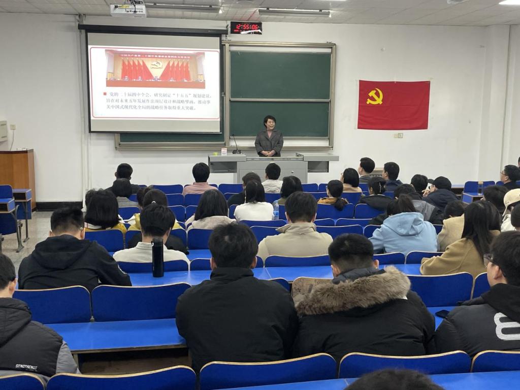 李巍围绕党的二十届四中全会召开的背景、重要意义、指导方针、战略任务等方面作了系统梳理和深入讲解。她表示,党的二十届四中全会立足“十五五”发展新阶段,作出事关长远发展的顶层设计和战略部署,明确了未来五年在推动高质量发展、实现科技自立自强、深化改革开放、促进共同富裕、建设美丽中国等重点领域的实践路径,深刻阐释了这一关键时期在全面建设社会主义现代化国家新征程中的历史方位与战略价值,通过翔实的案例和生动的语言,引导师生准确把握新时代新征程使命任务,进一步增强为实现中华民族伟大复兴贡献智慧力量的责任感和使命感。讲座还结合天津市“十五五”发展规划的思路举措、学校未来发展蓝图,强调既要深刻把握“十五五”发展机遇,更要将党的二十届四中全会精神落实到推动学校及学院高质量发展的具体行动中来,在服务地方与国家战略中展作为、显担当。