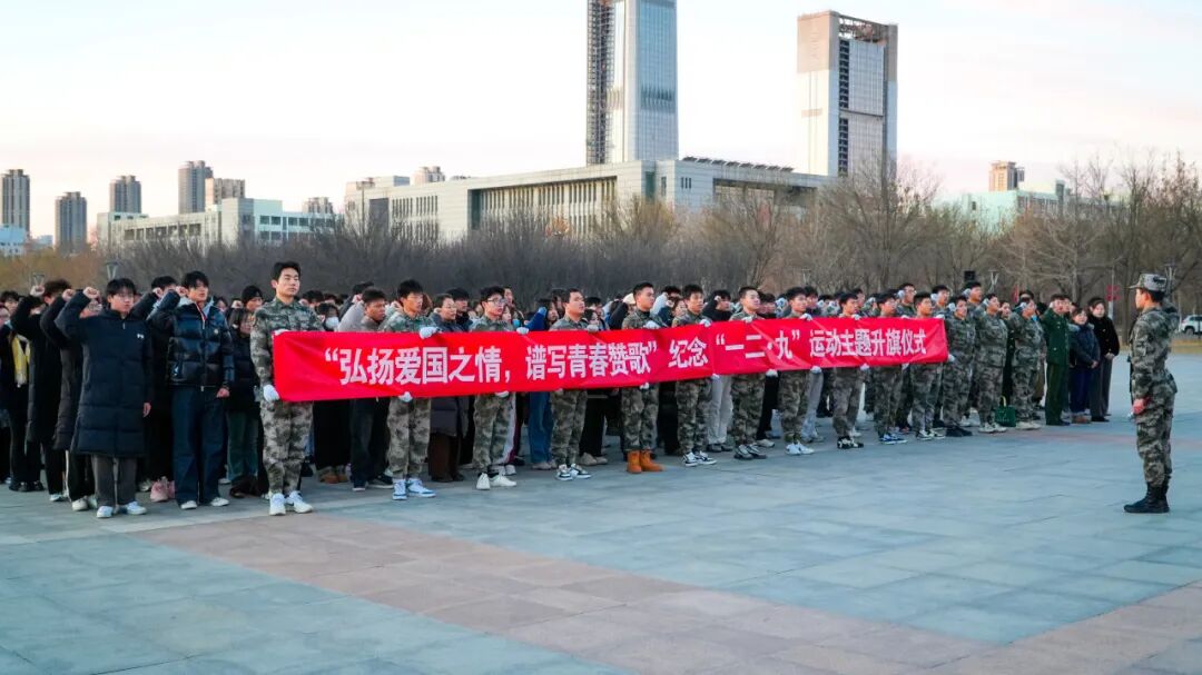 12月8日,学校举行“弘扬爱国之情,谱写青春赞歌”纪念“一二•九”运动主题升旗仪式。学工部相关负责人,马克思主义学院教师代表,红旗班、国旗班、预储班、退役士兵和学院师生代表共计420人参加。