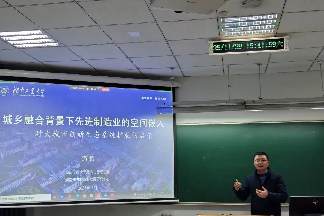主题报告环节共分两场,汇聚了多所高校与研究机构的学者分享前沿研究成果。第一场报告中,5位知名专家学者围绕城市更新与超大城市创新发展前沿理论、创新举措与研究路径展开深入探讨。深圳市社会科学院粤港澳大湾区研究中心主任兼国际化城市研究所所长、研究员袁义才以《基于增长极理论的粤港澳大湾区城市群一体化发展战略研究》为题,阐释了增长极理论背景下,粤港澳大湾区城市群如何一体化发展。南开大学中国城市与区域经济研究中心教授、博士生导师王家庭在《首发经济赋能京津冀建设中国式现代化先行区、示范区的内在逻辑与推进方略》中,讨论了首发经济在赋能京津冀建设中国式现代化先行区、示范区过程中的内在逻辑与推进方略。北京师范大学京师特聘教授吴康在《电动汽车设施对商业活力的影响:以北京市商业更新项目为例》中,以北京市商业更新项目为例,分析了电动汽车设施对商业活力的影响效应。西南财经大学经济与管理研究院教授、系主任肖伟以《Government–Directed Urban Growth, Firm Entry, and Industrial Land Prices in Chinese Cities》为题,聚焦行政区划调整对土地市场和企业投资的影响机制,为理解中国城镇化模式提供了微观证据。湖南工业大学经济与管理学院副教授、硕士生导师游斌以《城乡融合背景下先进制造业的空间嵌入——对大城市创新生态系统扩展的启示》为题,报告了城乡融合背景下先进制造业的空间嵌入,尤其对大城市创新生态系统扩展的启示展开深入研究。
