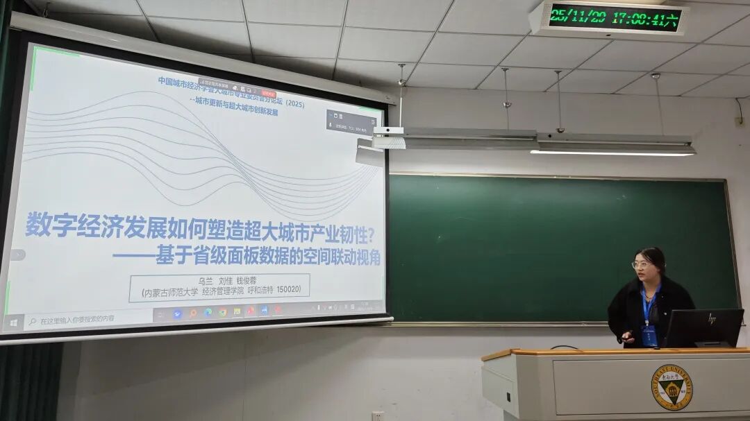 第二场报告中,8位学者围绕城市更新、数字基础设施、数字经济、城市创新、超大超市空间韧性、低空经济等内容展开深入讨论。华东师范大学公共管理学院教授、系主任黄忠华以《地方政府激励与城市更新政策创新:理论机制与实证检验》为题,报告了基于理论机制与实证检验视角下地方政府激励与城市更新政策创新的关系。重庆社会科学院助理研究员黄梦涵以《数字基础设施建设、空间布局与城市经济韧性》为题,讨论了数字基础设施建设对城市经济韧性的影响效应。浙江工商大学统计与数学学院博士研究生徐涛以《城市如何更“新”:可持续城市更新模式提升创新活力的效应与机制》为题,分享了在可持续城市更新模式提升创新活力的效应与机制背景下,城市如何更“新”。兰州大学经济学院博士研究生杜昶昱以《以数赋能:数据要素共享、平台经济与居民消费》为题,探讨了数据要素共享对居民消费的影响效果及其作用机制。西北师范大学经济学院硕士研究生王楠以《绿色金融如何赋能城市绿色创新?——内在机制与政策效应》为题,剖析了绿色金融对城市绿色创新影响的内在机制与政策效应。内蒙古师范大学经济管理学院硕士研究生钱俊蓉以《数字经济发展如何塑造超大城市产业韧性?——基于省级面板数据的空间联动视角》为题,报告了基于省级面板数据的空间联动视角,数字经济发展对超大城市产业韧性的影响效应。威客电竞经济与管理学院副院长、教授刘建朝以《数字技术驱动超大规模城市空间韧性的路径与对策》为题,分享了基于路径与对策视角下,数字技术如何驱动超大规模城市空间韧性。威客电竞经济与管理学院讲师朱丹以《运输经济视角下低空经济内涵指向、时空特征与保障体系研究》为题,探讨了基于低空经济的运输经济内涵、时空经济特征与发展保障体系。