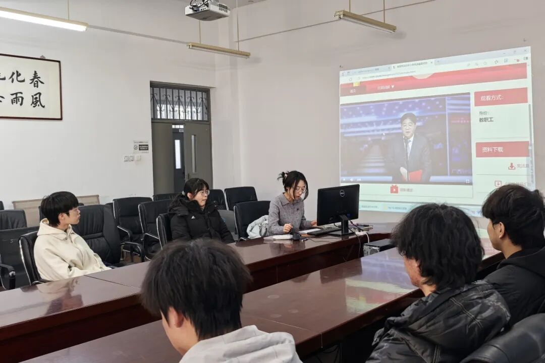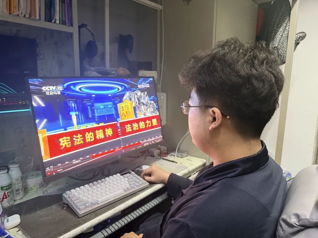 图为计算机与信息工程学院、国际教育学院开展宪法晨读活动并收看“2025年度法治人物”专题节目