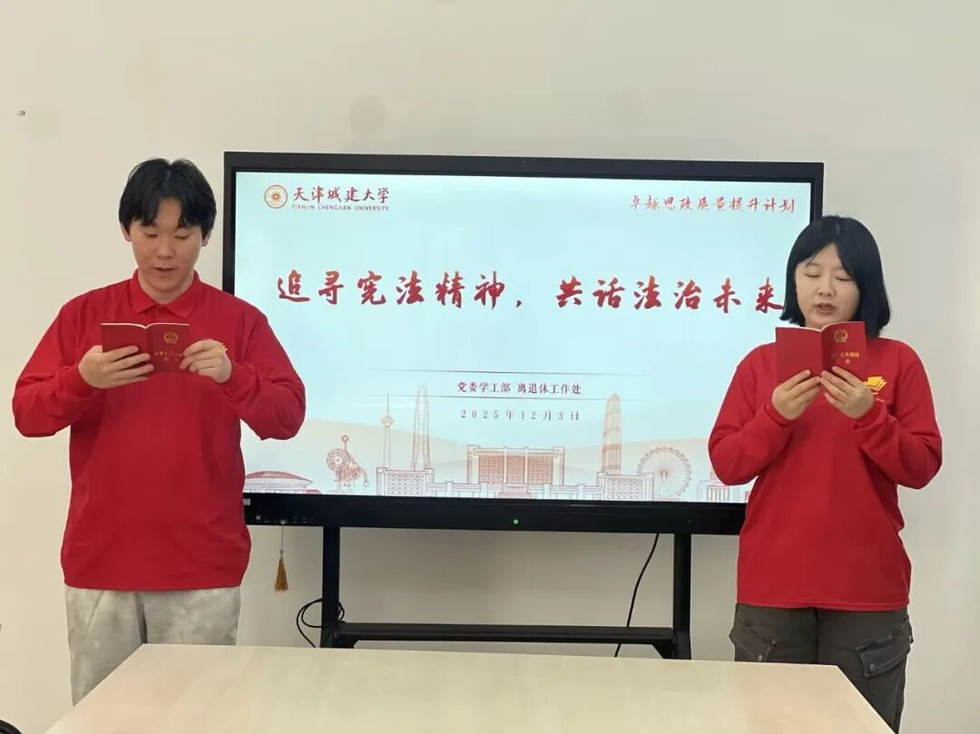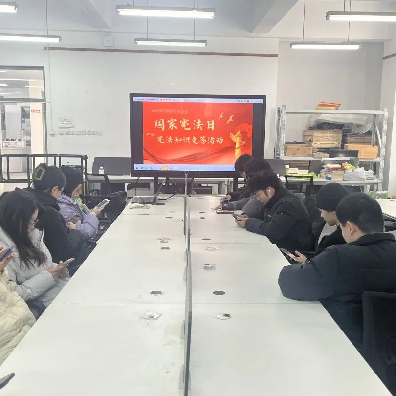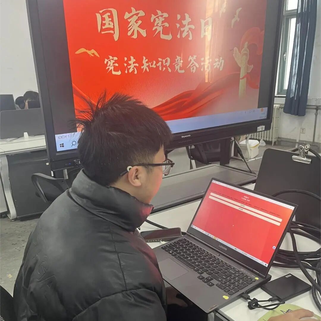全员参与,“声”扬行动。学校秉承“以赛促学、以学促行”的工作思路,组织师生积极参与宪法知识竞赛,变“单向灌输”为“主动汲取”,以竞赛之“声”激扬学习热情。充分发挥学生骨干的示范作用,组织校“红旗班”学员开展主题微宣讲,带领同学诵读宪法条款。通过团课宣讲、主题班会、模拟法庭、学生党员“一月一课”等形式,构建起全员参与的宪法宣传教育网络。