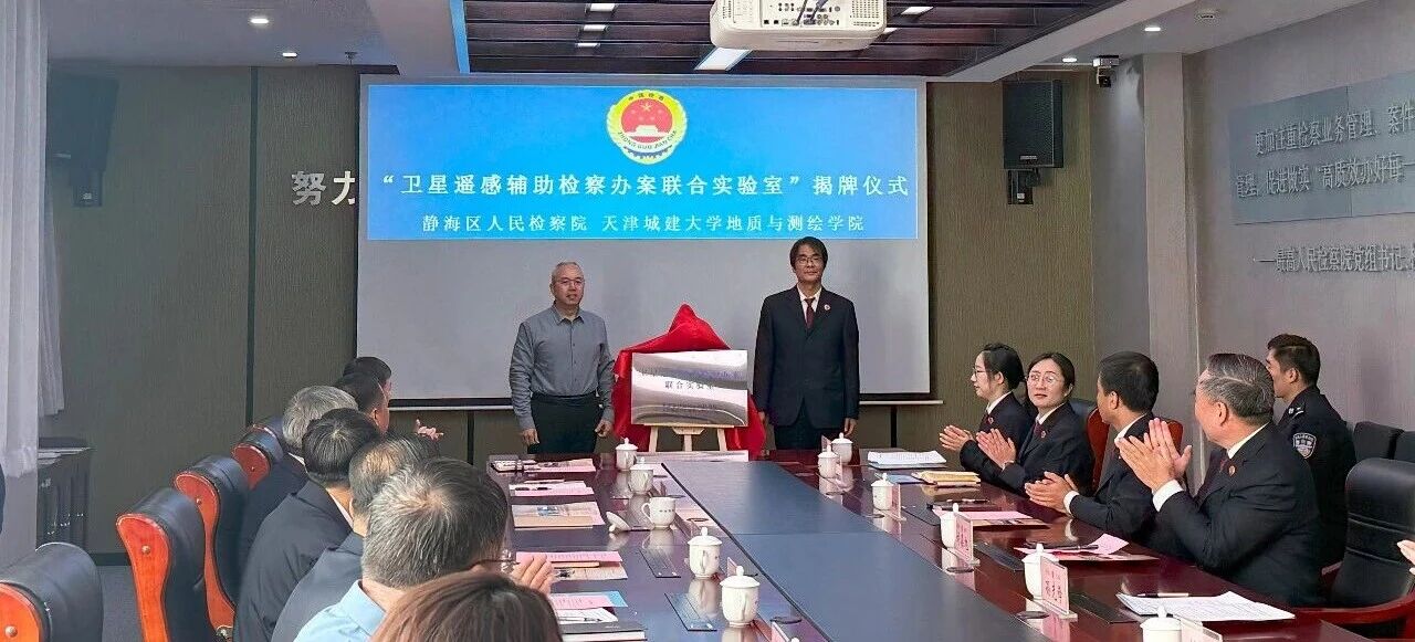 近日,我校地质与测绘学院与静海区人民检察院签署合作协议,并共同为“卫星遥感辅助检察办案联合实验室”揭牌,签约仪式在静海区人民检察院举行。市检察院党组成员、政治部主任王德群、九三学社天津市委员会秘书长严海、静海区委常委、统战部部长、区政协党组副书记刘启建等嘉宾出席。静海区检察院党组书记、代理检察长孙先锋主持签约仪式。