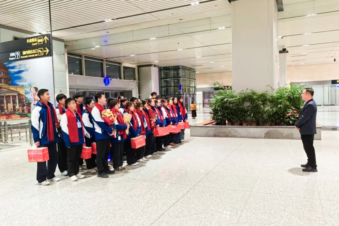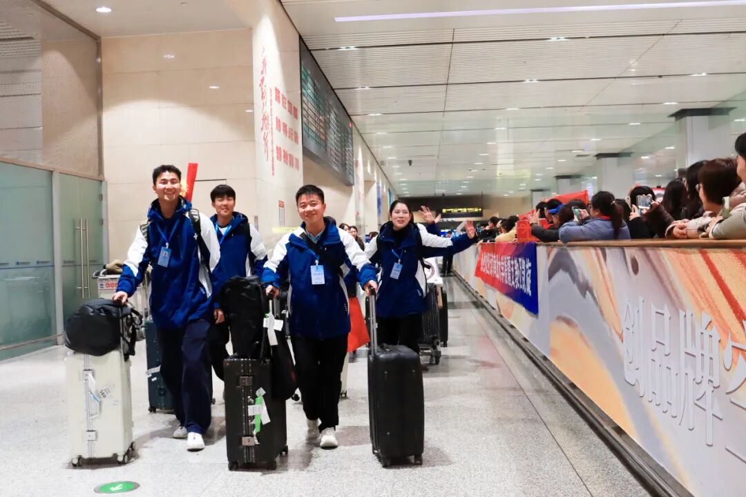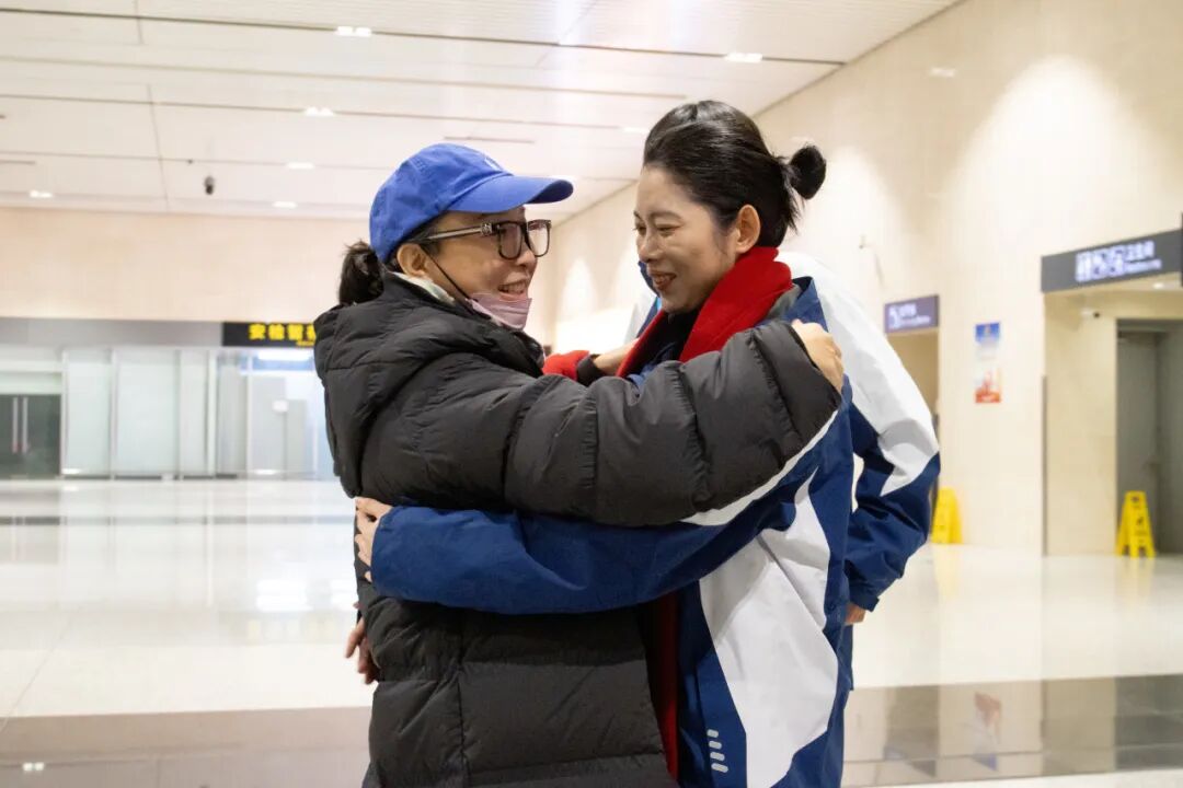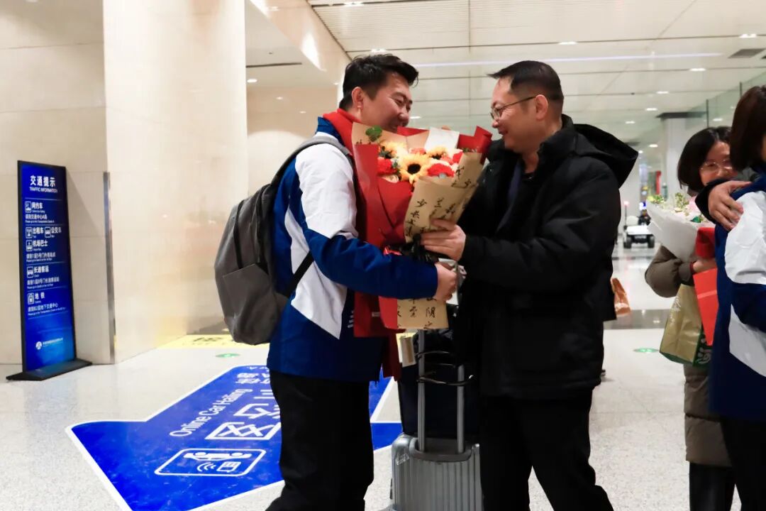 12月29日,支教团师生圆满完成支教任务,载誉而归。师生代表前往机场迎接,他们手持鲜花与横幅,目光紧紧注视着出口通道,翘首期盼着那一张张熟悉的面孔。