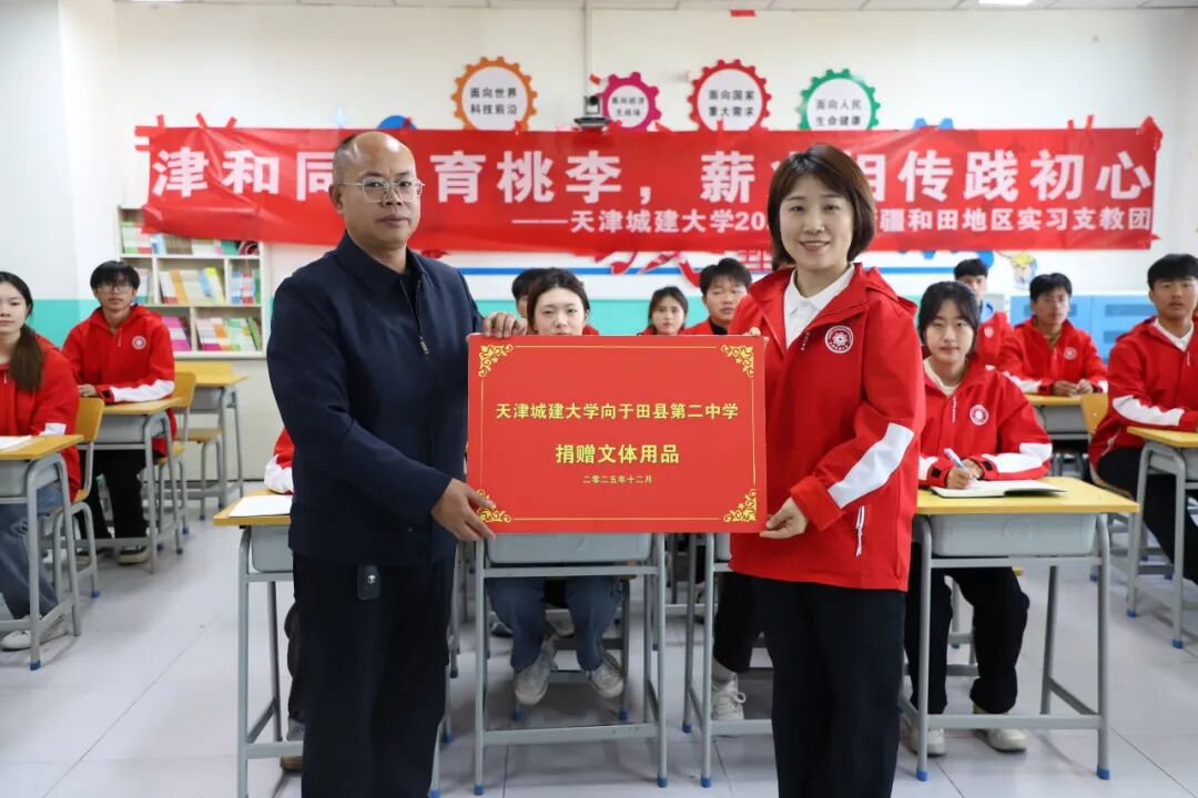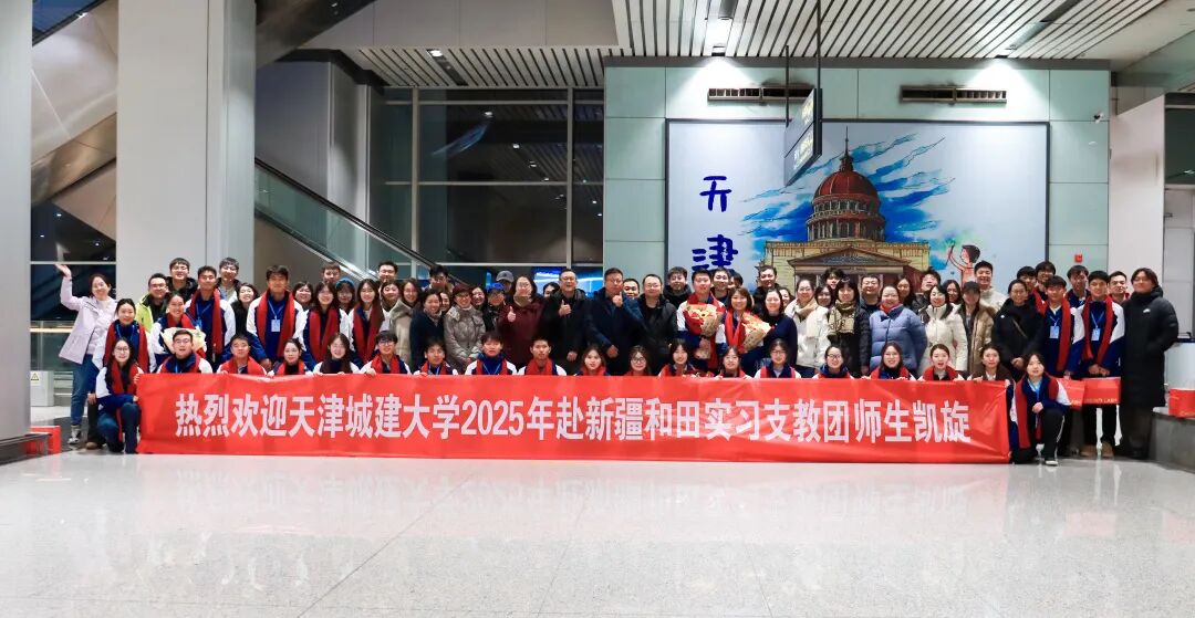2025年,我校选派32名优秀师生参加天津市第十五批“金石榴”大学生西部支教团,奔赴和田地区于田县开展为期一学期的支教工作。支教团全体成员胸怀“国之大者”,以铸牢中华民族共同体意识为己任,躬身践行“重德重能 善学善建”校训精神,在南疆热土上书写新时代天城大青年的奋斗篇章。