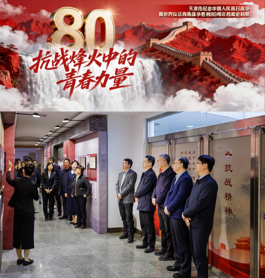 为纪念中国人民抗日战争暨世界反法西斯战争胜利80周年,由天津市教育两委、市档案局、市档案馆联合主办,我校承办的“抗战烽火中的青春力量”档案史料展首展在我校鸣飞堂举行。展览通过四个部分和200余件珍贵档案史料生动再现了抗日战争时期天津爱国青年在中国共产党领导下投身救亡图存的壮丽篇章。